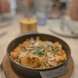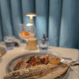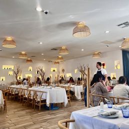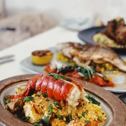 Fantastic dining experience! Beautiful interior & all dishes were delicious. All meals come with fluffy bread & olive dip. We got the zucchini cake & octopus appetizers, & for entrees got the lamb chops, seafood paella, lobster bucatini, & braised lamb shank. All were wonderful, & the braised lamb was a particular standout. All the flavors were lovely & it was cooked to perfection. The meat falls off the bone & melts in your mouth. Only downside is that the music felt a bit too loud/intense for the otherwise serene atmosphere. So excellent!